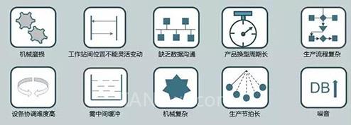 在柔性制造的产线设计中,输送系统是其中非常关键的一环,因为“协同”必须通过物理的产线连接来实现,不仅是物理的机械连接,也包括数据的通信连接,而传统的生产输送则存在以下一些问题: