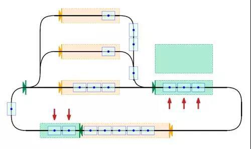 来自不同的产线的零配件汇流到一个产线,并在主轨道上按照次序进行生产,那么就可以由非常多的轨道分别进行汇流生产。