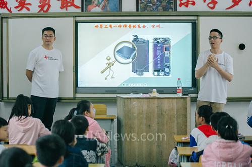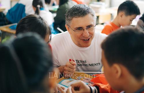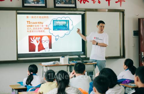 实际上,闻心语和杨拉今天上的课叫做“魔力芯动课堂”,是德州仪器(TI)发起和设计的公益助学课程。他们所在的学校是德州仪器在中国捐建的第六所希望小学。每到一处,TI的志愿者队伍都会将“芯片”、“电源”这些基本的科技知识带到偏远的地方,为当地的孩子们打开一扇科技之窗。在广西巴马,“魔力芯动课堂”的讲师由20余位TI各部门的经理和员工志愿者担任,TI全球教育技术总裁、教育事业及企业社会责任副总裁Peter Balyta博士、TI全球副总裁暨中国区总裁胡煜华女士都身在其中。志愿者们通过卡通、短片、电子产品演示相结合的方式,形象地介绍芯片的制作过程和应用领域。四年级三班的陈睿(化名)在课上做了风动汽车,看着自己放进去电池后就能前行的小汽车,他的心里满是惊喜与好奇。在课堂上,陈睿观看了Peter带来的一支小短片,短片分享了在美国老师们是如何通过科技启发孩子们将数学应用于生活,Peter还带来了装有TI芯片的计算器机器人,帮助孩子们学以致用。陈睿暗暗梦想着用芯片设计一个做饭机器人,帮每天做饭的姐姐减轻一些负担。他憧憬着以后可以离开巴马,到北京去,成为一个科学家,探索各种奇妙的东西。TI志愿者们的到来,在许多像陈睿这样的孩子心间播下了科技的种子,帮助他们推开了一个全新世界的大门。