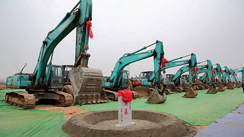 (图为领导和嘉宾推杆启动开工仪式)