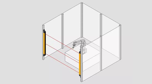 在一些具有潜在危险的机械设备上,安全光栅通过发射红外线,产生保护光幕。当光幕被遮挡时,装置发出信号,控制具有潜在危险的机械设备停止工作,避免发生安全事故。