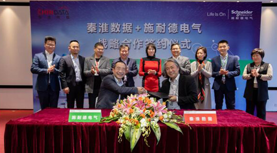 中国北京,2019年3月8日——近日,全球能效管理和自动化领域数字化转型的领导者施耐德电气与北京秦淮数据有限公司(以下简称“秦淮数据”)正式签署了战略合作协议,双方将在信息技术产业基础设施等多个业务领域展开深入合作,提升数据中心可靠及可用性并大幅缩短业务上线时间,结合智能配电解决方案及全生命周期服务,推动行业绿色高效发展,共建生态合作圈,促进行业的可持续发展。