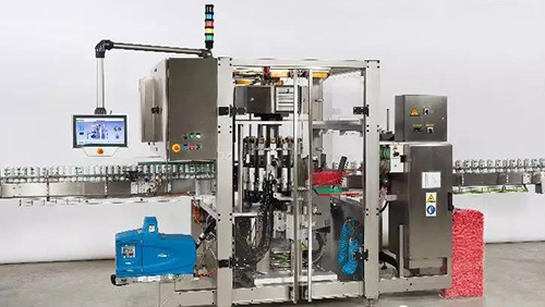 该系统的关键部分是一台带有16个工位的旋转式机械,这些工位围绕垂直驱动轴进行分组。在进料区,进料螺杆确保包装好的产品均匀间隔,进料星轮将它们输送到主轴周围的位置。光学传感器检测附着在容器上的色标。系统控制16个进料工位上的伺服电机将易拉罐、杯子或瓶子等容器旋转到正确的对准位置,喷嘴进行点胶,然后负责贴料的齿轮机构将物件附着到容器壁上,胶粘剂(在大多数情况下是热熔胶)的粘稠度确保在极短的时间内固化,使物件不再脱落。便利食品包装好后,继续沿着轴移动至出料站上游的预定位置,并通过出料带移动到最终的包装站。
