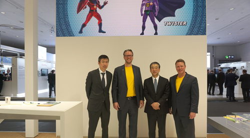 图片文字说明:在汉诺威工业博览会上重申双方合作:Hiroshi Satoh,广濑国际业务部总经理;浩亭技术集团首席执行官Philip Harting; 广濑总裁石井和生;HARTING Electronics董事总经理Ralf Klein(从左至右)。
