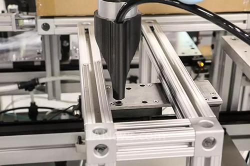 在上料阶段的方案优势是:将一个三维的问题简化为二维的问题。如果按照传统的方法,将不规则物体放入料筐分拣时,可行的方案往往是使用3D视觉。然而受制于3D视觉的成本、精度、以及现场调试的门槛,对于用户的实际应用往往会提出非常大的挑战。而更简单的方式是利用振动的特性,将一对料件从料筐中撒到平面上,振动排列成理想的形态,通过二维相机识别,然后使用协作机器人将目标挑选出来。这就意味着可以用一个成熟的二维方案来解决三维问题,从而提升效率。