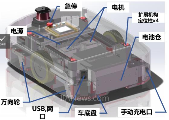 在上期的AMB系列无人搬运底盘硬件构成介绍中,主要从操作面板、LED灯带和扩展机构定位柱等这几个方面进行了重点介绍,接下来将详细介绍一下其它硬件构造: