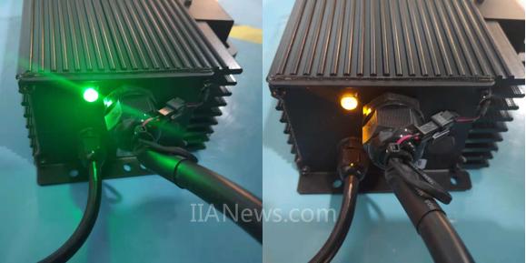 插头连接电源,绿灯亮起;插口连接机器人,黄灯亮起