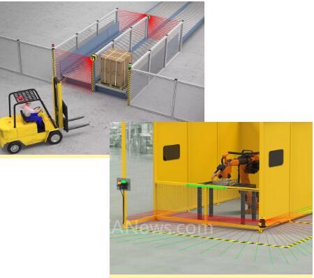 SX5-B安全激光扫描仪可用于创建水平和垂直探测区域,用于可靠地保护指定区域、出入口和移动设备(AGV)。安全扫描仪通常用于保护: