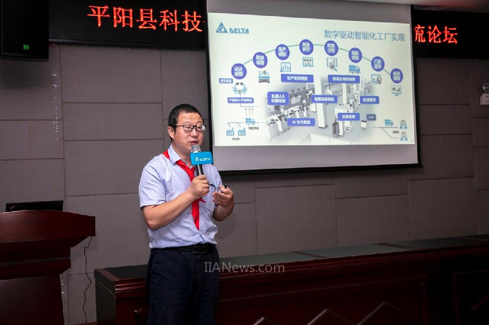 针对温州平阳科技创业服务中心的特点,特别举办了“台达智慧绿城市解决方案日-工厂节能之道专场”活动,图为台达资深工程技术主管现场详细解读工厂节能之道