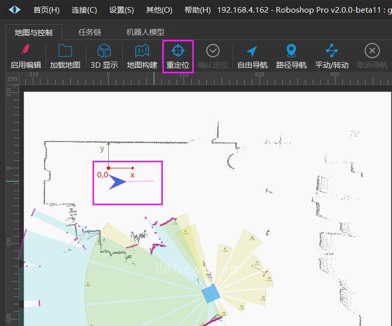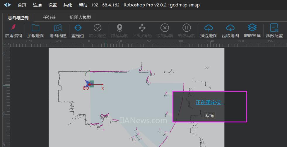 这时候,我们需要对机器人进行【重定位】操作,完成该操作后方可正常使用机器人。