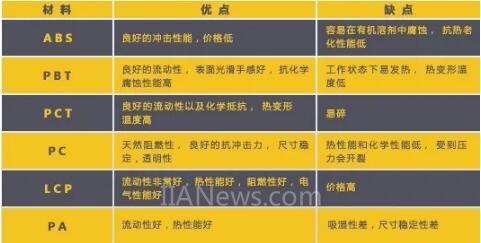 大牛为大家列出了目前常见连接器塑胶材料的优缺点