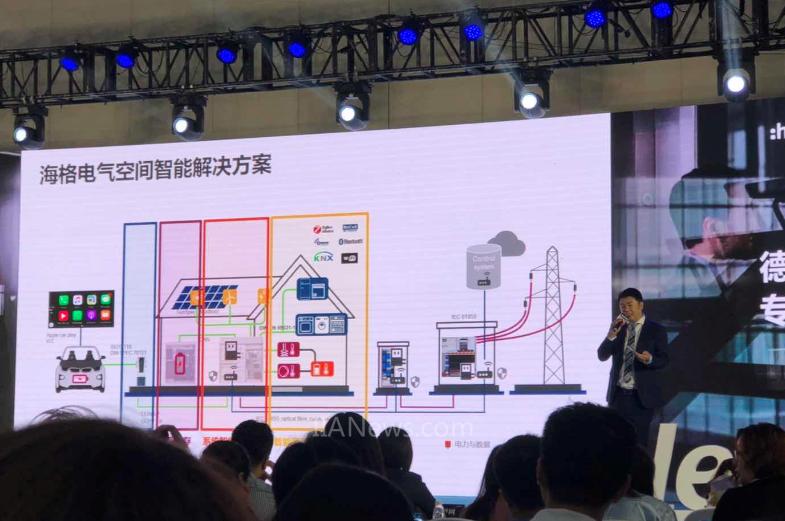 在数据为王的时代,海格电气提出了空间智能解决方案,通过KNX,蓝牙,NBIoT,LoRa等物联网通讯协议,将能源的使用和再生分成四个阶段,实现了从配电柜,智能建筑,可再生能源,新能源汽车的电能全生命周期的能效管理解决方案。