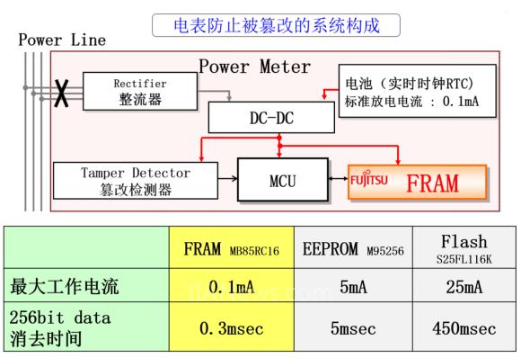 图4:智能电表防止黑客盗窃或篡改信息的系统构成及FRAM高速擦除数据的优势