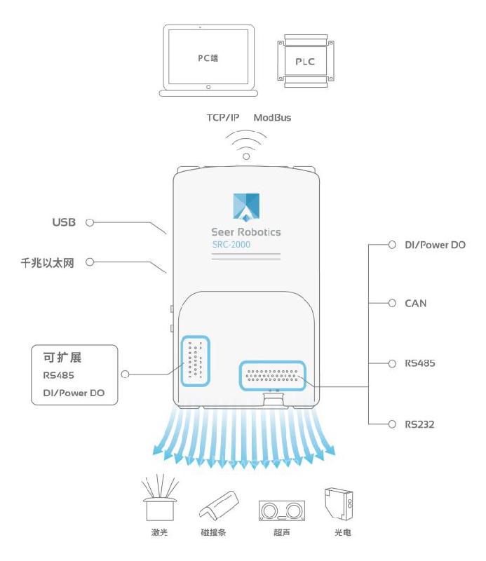A:SRC系列核心控制器提供丰富的外置接口和通讯总线,包括RS232、RS485、CAN、千兆以太网、USB、DI/Power DO等;满足多种通讯协议,支持ModBus、TCP/IP协议供外部调用。