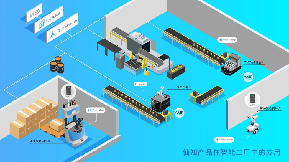 通过仙知自主研发的可视化操作软件Roboshop,一站式实现机器人的自动标定、建图、导航、配置及任务序列编辑等;配合多机调度系统RoboRoute,能够同时对上百台不同类型的移动机器人进行统一调度与部署,并为机器人提供最优路径选择与最优任务分配,满足工厂柔性化、智能化生产需求。仙知机器人全方位、场景化的产品、技术与解决方案,已经在汽车制造、家电制造、3C电子制造、半导体制造、电商仓储、安防巡检等多个领域得到了广泛应用。