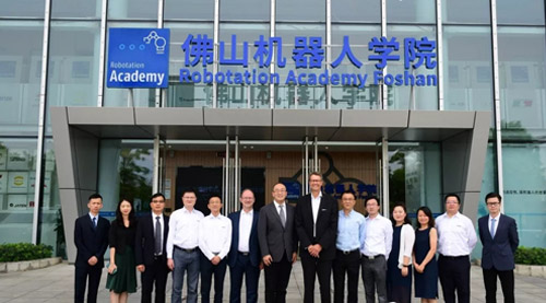 8月23日上午, 伦茨集团(Lenze Group)CEO,董事会主席Christian Wendler先生、伦茨集团CTO Frank Maier先生和伦茨亚洲总裁,董事会执行董事谢卫东先生等一行9人到访佛山机器人学院,参观机器人学院展厅并与佛山机器人学院领导展开座谈会,商讨进一步增强合作事宜。