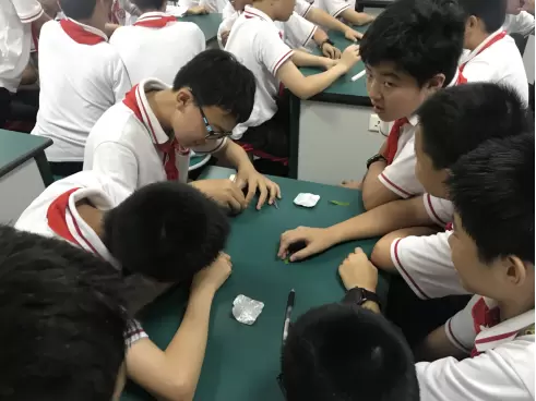 学生们兴致勃勃地进行趣味实验