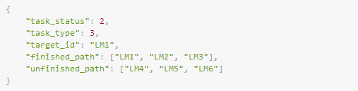 如下数据表示机器人正在使用路径导航的方式去 id 为 "LM6" 的站点, 已经经过的站点为 LM1, LM2, LM3, 尚未经过的站点为 LM4, LM5, LM6