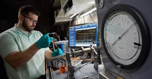 “就在那一刻,我们决定进行投资。”Hannon 说道。如今,铁姆肯公司的流变学实验室配备了两台落体粘度计,可在各种压力和温度下测量粘度和密度。借助库艾特粘度计,我们的团队还能测量润滑剂对高剪切速率的反应。Hannon 还表示,该实验室还拥有一些非常实用的设备,包括:一台傅里叶变换红外光谱仪,可帮助我们的团队识别未知流体;一台能量色散 X 射线光谱仪,可帮助我们的团队识别液体中对设备有磨损的成分;一台卡尔费休滴定装置,可检测油中的水分;以及其他一些“让我们能够分析润滑脂的设备”。
