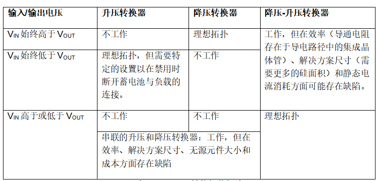 · 降压-升压可以在关机期间断开负载与电源的连接,而其他拓扑可能需要额外的负载开关。