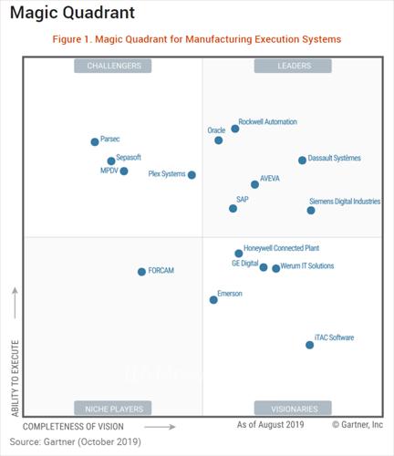 (2019 年 11 月14 日,中国北京)罗克韦尔自动化(NYSE:ROK)近日宣布,已被 Gartner 评为“制造执行系统 (MES) 魔力象限”领军者。这是罗克韦尔自动化连续第二年获此殊荣。全球领先的信息技术研究和顾问公司Gartner根据愿景完整性和执行力来评估各个魔力象限中的供应商,本届评选根据 15 项度量标准对 16 家企业进行了评估。自 2018 年报告发布以来,罗克韦尔自动化在执行力和愿景完整性两方面的排名均有所上升。