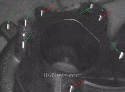 激光打标技术是激光加工最大的应用领域之一。在汽车零部件行业中应用也是非常广泛,激光打标机的系统集成商在提供激光打标方案的同时会根据最终用户的需要进行零部件质量检测的视觉集成。其中涡轮增压器壳体螺纹孔检测原先采用激光传感器,多个孔就需要安装多个传感器,导致安装复杂、调试困难等等的问题,那么怎么办呢?别急,邦纳iVu图像传感器给您解决方案。