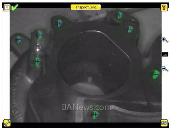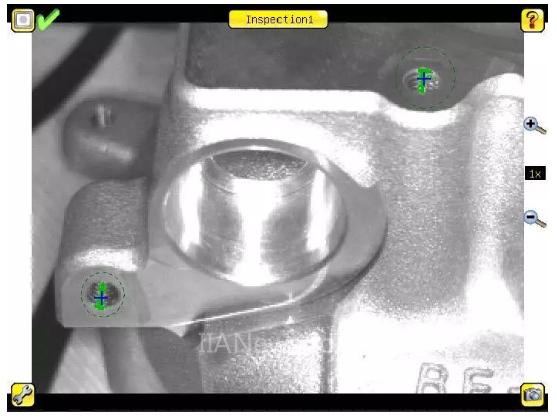 • 扩展检测,在这个视野中可以检测到8个螺纹孔,事实上iVu最多支持9个面积工具。