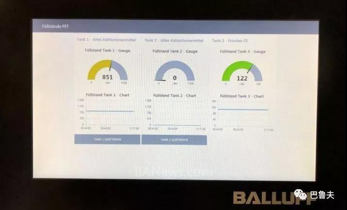上述3个液体缸内使用的传感器都具备IO-Link接口,能与总线模块通信。此外,通过以太网TCP/IP也能与总线模块通信,便于建立数据显示面板进而监控缸内液位。