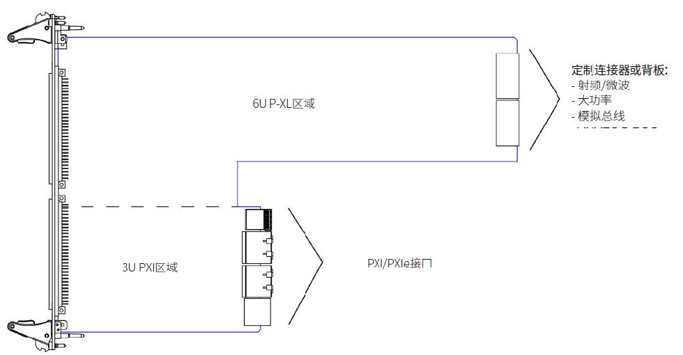 ●可以同时容纳标准3U. PXI模块和P-XLe模块,在满足PXI工作的条件的同时,实现对老旧VXI设备的兼容和支持。