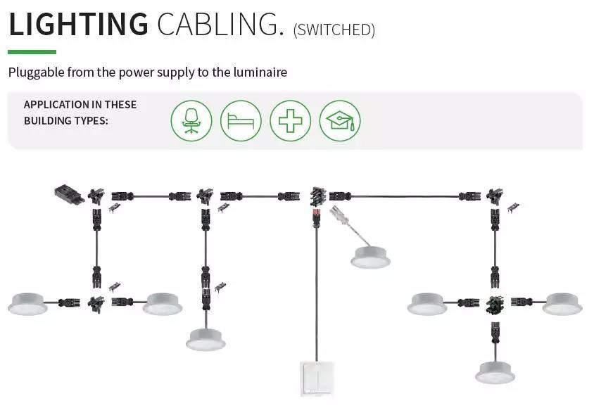 得益于gesis®快插连接器的优势,您可以搭建出更加个性化更经济的照明或插座供电方案,该方案可适用于办公,酒店,医院,学校,家居,银行等各类应用场景。