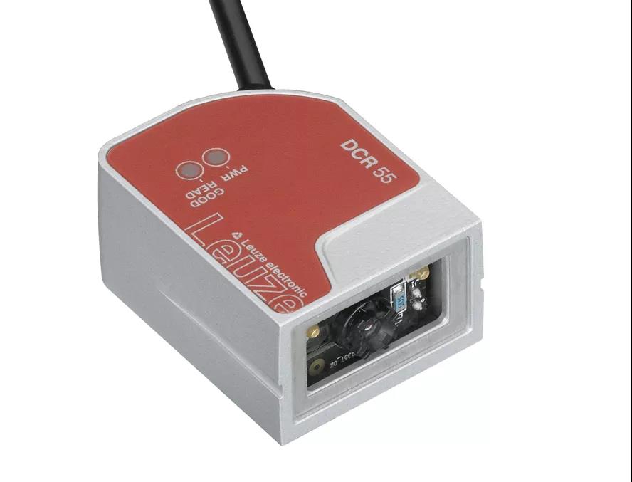 超小型一维码和二维码阅读器DCR 55,适用于静止或慢速移动物体上进行条码读取