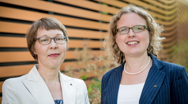 标题:吉塞拉·艾柯夫(Gisela Eickhoff)(左)和乌尔丽克·厄普迈耶(Ulrike Upmeyer)庆祝获得该奖项。