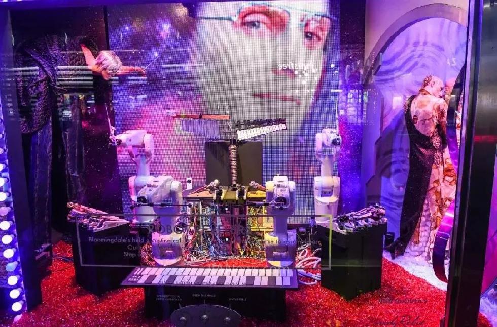 由四台ABB IRB 1200机器人组成的节日管弦乐队演奏着黄铜打击乐器、小手鼓、编钟和未来主义的数字木琴,用一系列圣诞颂歌来娱乐顾客。Bloomingdale的游客可以在街上和机器人互动表演,并在三个节日经典曲目:“闪亮的圣诞节”,“铃儿响叮当”,“圣诞快乐歌”中选择一首。当按下按钮,游客和机器人乐队的照片就会出现在展示橱窗里的显示器上。