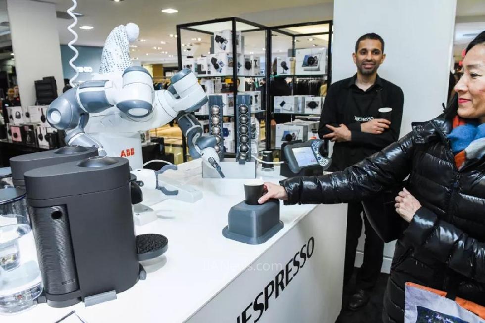 在Bloomingdale百货公司,还有ABB的标志性协作机器人YuMi®展示最新的Nespresso(一种胶囊咖啡)咖啡体验,为顾客提供不同口味的咖啡。