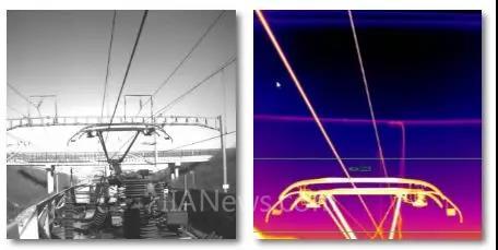 可将红外热成像设备安装于车顶,对受电弓和接触网的连接处进行温度探测,实时监测接触网故障点,如果在列车行进中发现故障点,将产生瞬间高温,热像仪可以记录该时刻高温值和故障点位置,以便检修人员及时进行修复