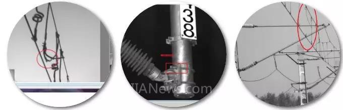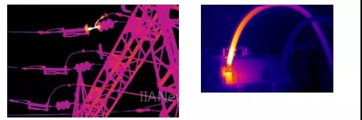 接触网有很多接头、回流线等,牵引变电有变压器、熔断器、断路器及所有配电线等。使用红外热像仪可以发现接头松动或接触不良(抽头变换器)、套管过热、过载、三相负载不平衡等隐患(见图)。其影响为产生电弧、短路、烧毁、起火。接触网连接件容易受到外界因素的影响发生过热,严重时造成供电中断,引发列车停运事故。