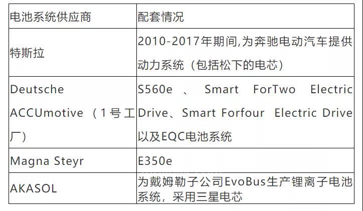 戴姆勒主要电池系统供应商情况