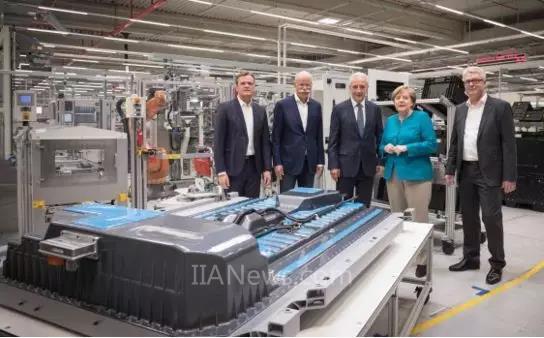 德国总理默克尔在奔驰汽车公司董事长Dieter Zetsche和两名员工陪同下对ACCUMOTIVE工厂进行考察 资料来源:戴姆勒官网