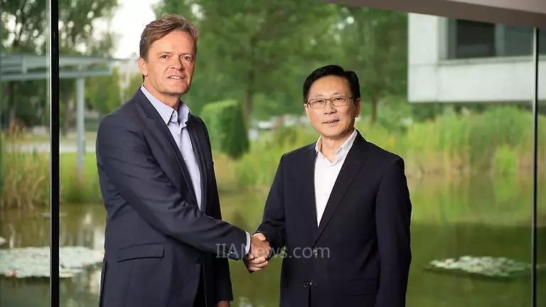 左:戴姆勒管理委员会成员,负责公司研究和梅赛德斯-奔驰汽车开发Markus Schäfer;右:孚能科技创始人YU WANG