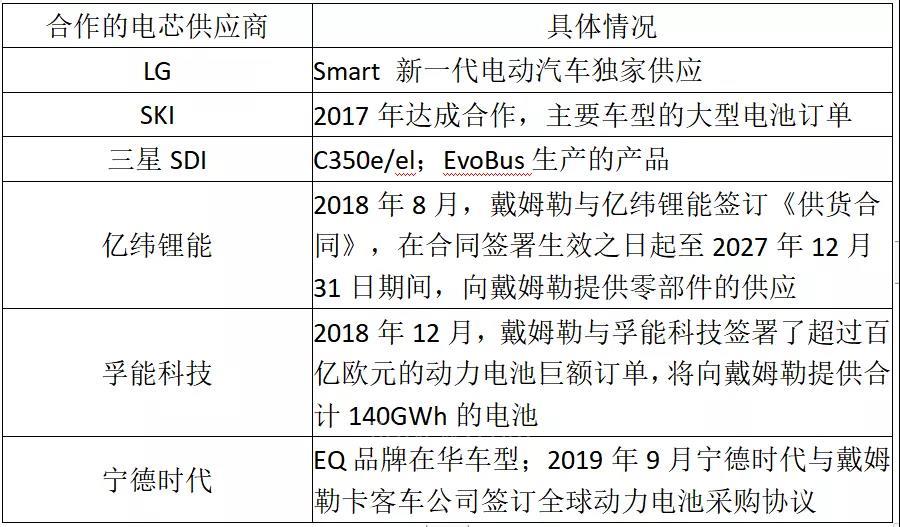 戴姆勒合作电芯企业情况