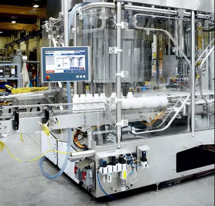 这类系统的特点是都采用非接触式灌装,可以防止容器以及设备的运输和灌装单元受到污染,并让无菌包装能够满足严苛的质量和食品卫生标准。“在非接触式灌装过程中,喷嘴漂浮在容器开口上方,距离通常约为四分之一英寸。”ProMachFillingSystems工程副总监CesaryMroz解释道。非接触式灌装的先决条件是将容器精确定位在灌装喷嘴下,并实时控制灌装重量。XACT-FIL设备使用螺杆进料装置将空容器装载到转盘上,并由旋转的灌装机将液体产品分配到容器中。在各个灌装工位下方的称重传感器负责检查每个容器的重量,每秒最多可以检查5000次,直到达到所需的灌装液位。然后将容器移至封盖机。