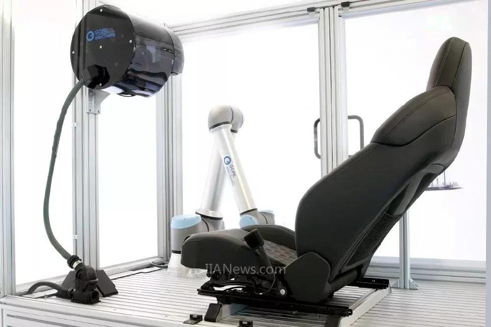 UR10e配备了Robotiq经UR+认证的夹具,可轻松致动汽车座椅上的按钮和开关。