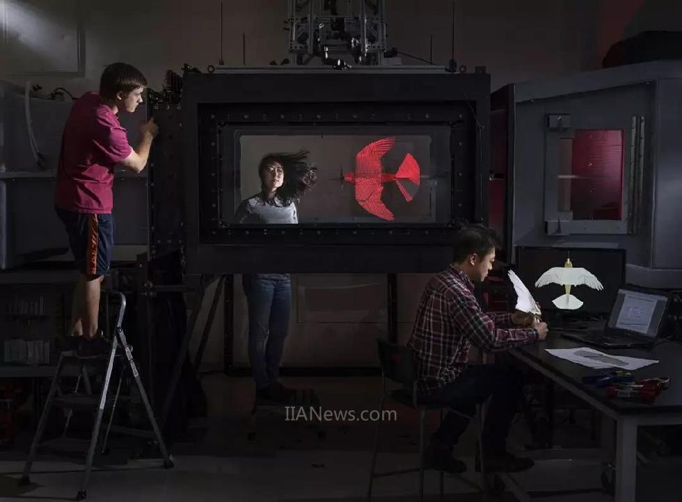 视频|EricChang和LauraMatloff对机械羽毛翅膀进行风洞测试(来源:Eric Chang)