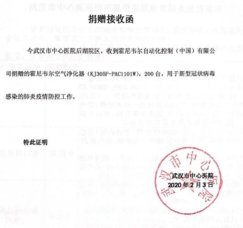 霍尼韦尔智能建筑科技集团大中华区副总裁兼总经理李烨表示:“疫情就是战场,时间就是生命。霍尼韦尔心系疫情抗击前线,全力协调资源武装湖北各地医院,支持抗击新型冠状病毒。希望通过的绵薄之力,支持湖北早日战胜疫情!让我们不畏艰难,共创美好未来!”