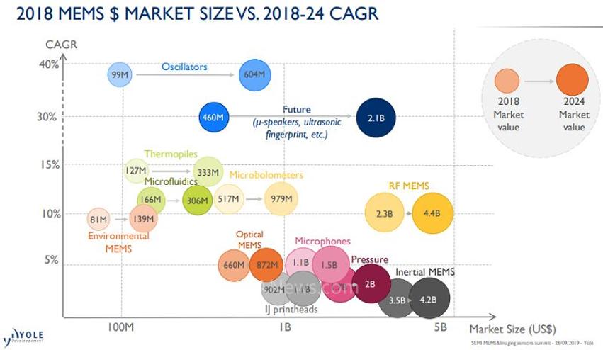 “MEMS技术无处不在,其应用已经覆盖了机器人、智慧城市、医疗设备、状态监测、智慧农业、自动驾驶等生活的各个领域。”ADI亚太区微机电产品线总监赵延辉指出,专业调研机构的数据也验证了赵延辉的观点,据Yole Développement统计,2018年全球MEMS市场达到116亿美元,预计到2024年将以8.2%的年复合增长率(CAGR)持续增长。其中消费类应用将占MEMS市场的60%,汽车应用则占20%,其余的20%包括电信、医疗、工业和航空等应用。MEMS传感器优势明显,赵延辉就用当下热门的三大应用为例详细介绍了MEMS传感器在新兴市场中的巨大应用前景。