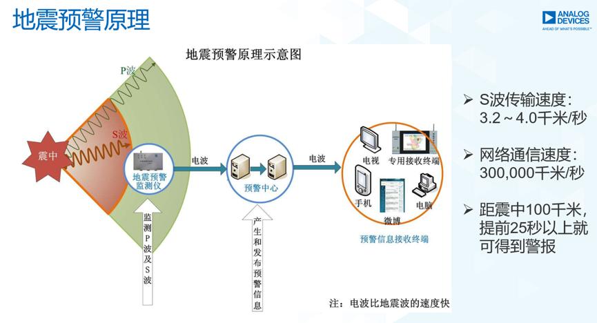 地震波按传播方式分为三种类型:纵波(P波)、横波(S波)、面波(L波),纵波传播速度较快、破坏力较小,S波传播速度较慢,与P波在地表相遇后激发产生的混合波破坏力巨大,地震系统就是利用纵波传输速度最快,检测到纵波以后,利用通信网络的高速传输发出预警。