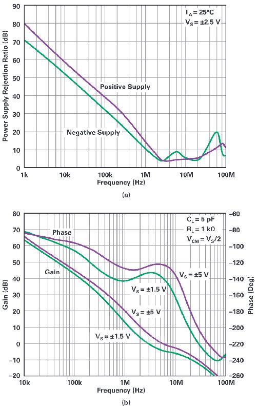 图2.(a) LTC6240的PSRR,(b) LTC6240的开环增益
