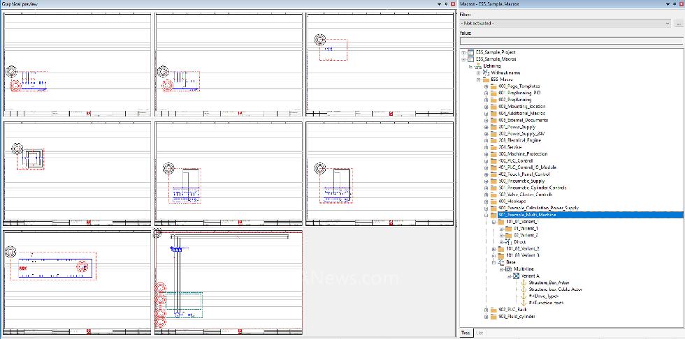 在EPLAN平台的以前版本中,“宏导航器”的列表视图已更改为包含单元格的表,因此可以很容易地对其进行编辑。而在最新版本中,此功能已扩展到其他导航器,例如部件导航器、PLC导航器和电缆导航器。这给2.9版本带来了极大优势,因为现在可以顷刻之间对项目数据进行整体编辑。在宏的使用中,一旦一个宏项目被完成,就可以从“宏导航器”中“拖放”标准格式的宏,从而将其插入到其他项目中。当然,当用户在宏或原理图项目中创建窗口和符号宏时,也可以如上述操作。由于不再像以前那样需要通过目录中的宏选择来进行繁琐的选择,现在可以节省大量时间。另一个好处是可以重复使用数据,从而确保并提高了项目质量。