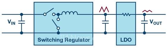 线性稳压器特别适合用来滤除开关稳压器产生的电压。开关稳压器总会产生一定量的输出电压纹波。在许多处理非常小的信号的应用中,这种纹波可能会造成干扰。