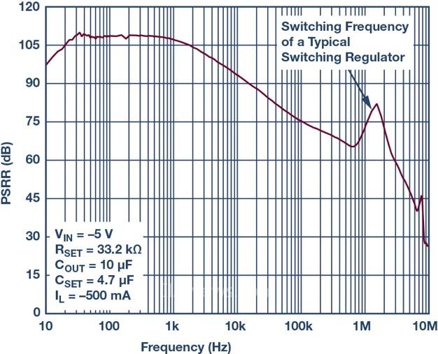 线性稳压器可以滤除正负电源输出电压的电源纹波。这种滤除对于负电源电压范围也很有用。由于适用于负电源电压的低噪声类型产品有限,所以很难找到合适的部件。随着ADI公司推出全新的Power by Linear™ LT3094,现在客户也拥有噪声非常低而PSRR极高的产品选项。